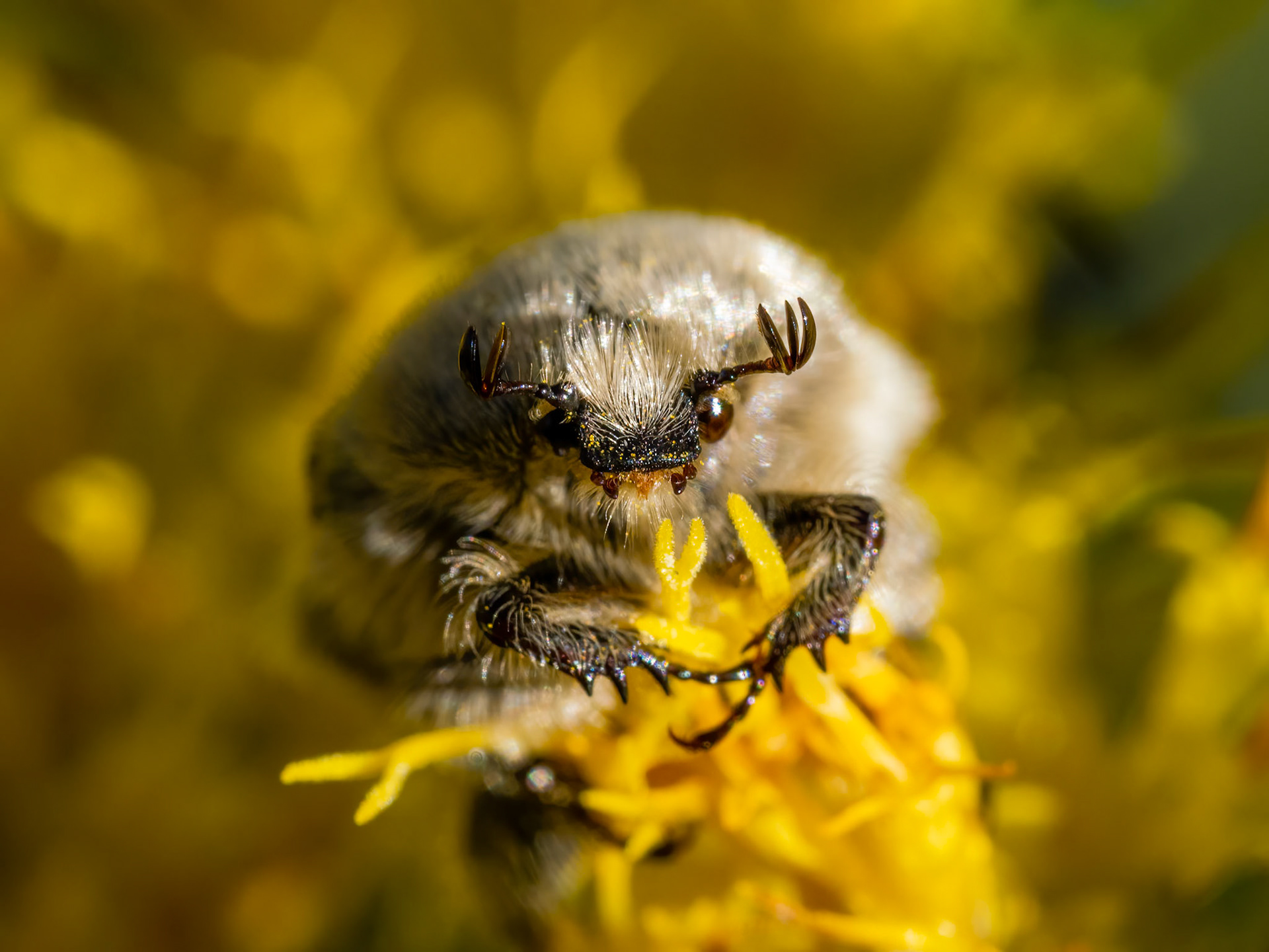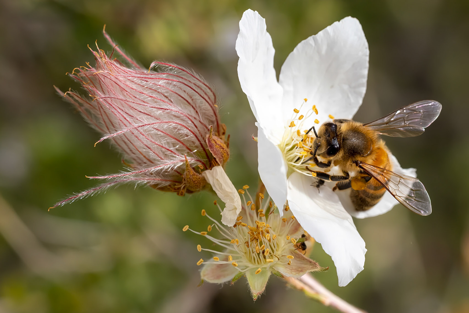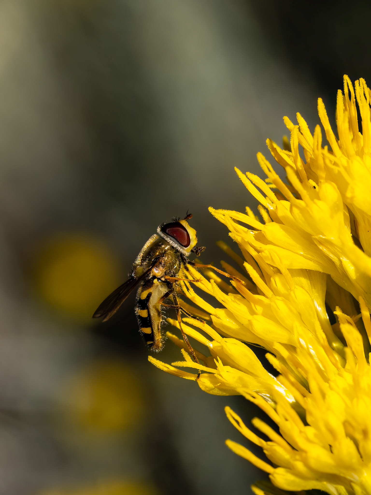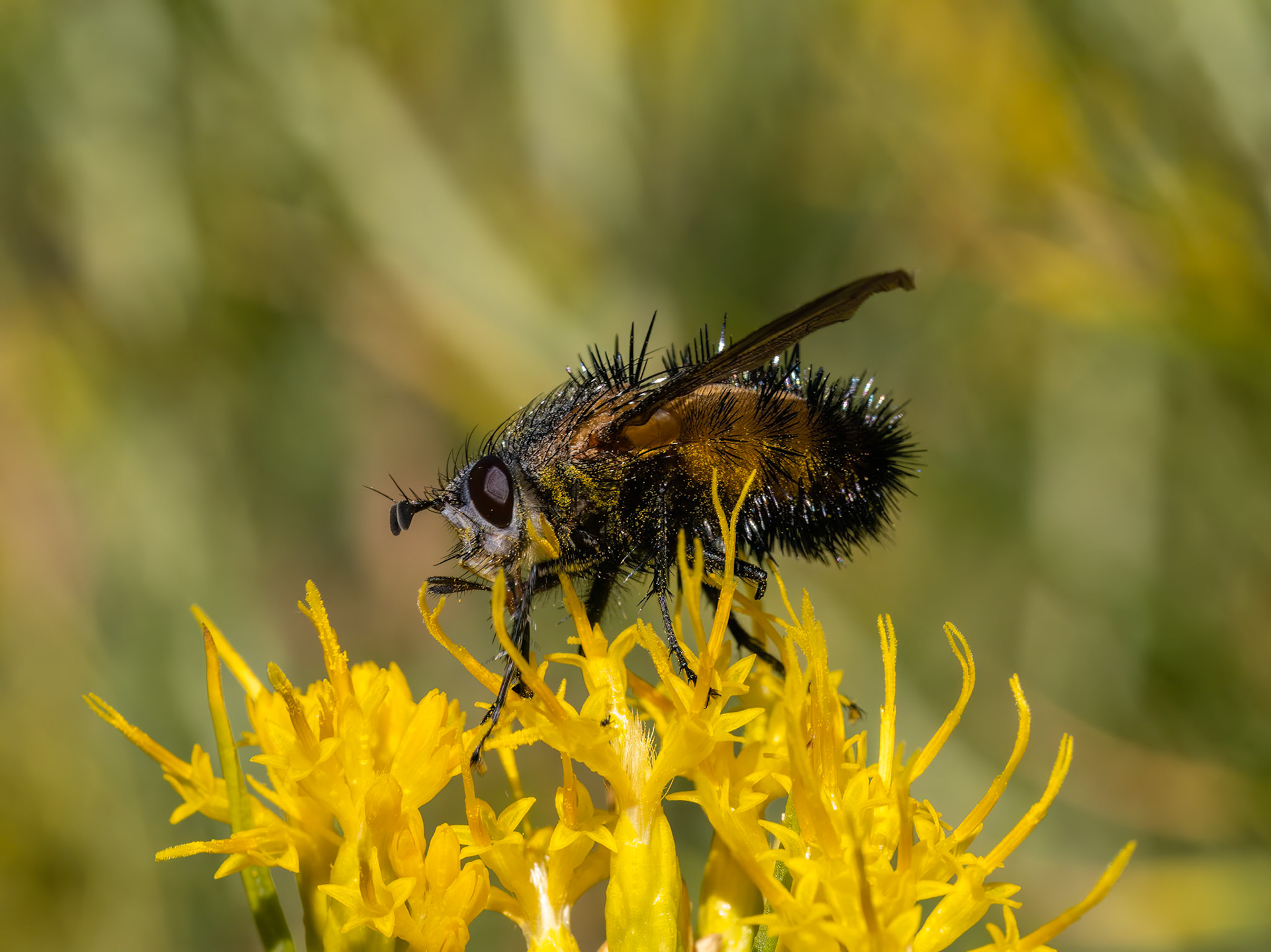 Galápagos Carpenter Bees are the only bee on the islands and an endemic species. Here one moves from flower to flower pollinating them as it goes. Urbina Bay, Galápagos